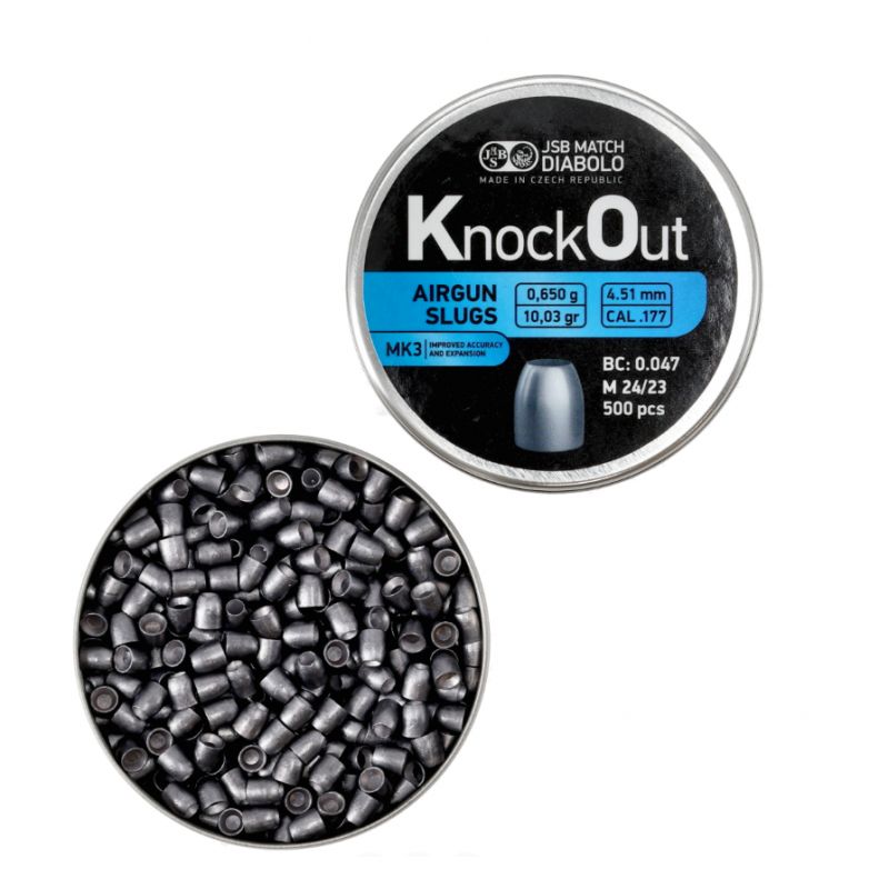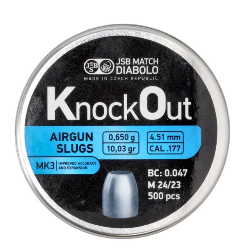 Śrut JSB KnockOut przystosowany jest do strzelania na dużych dystansach jak 50,100 czy nawet 200 metrów. Producent zaleca do tego celu wykorzystywanie broni pneumatycznej o energii co najmniej 25 J, a w celu uzyskania najlepszych wyników preferowane są wiatrówki o mocy w zakresie 40-60 J.
