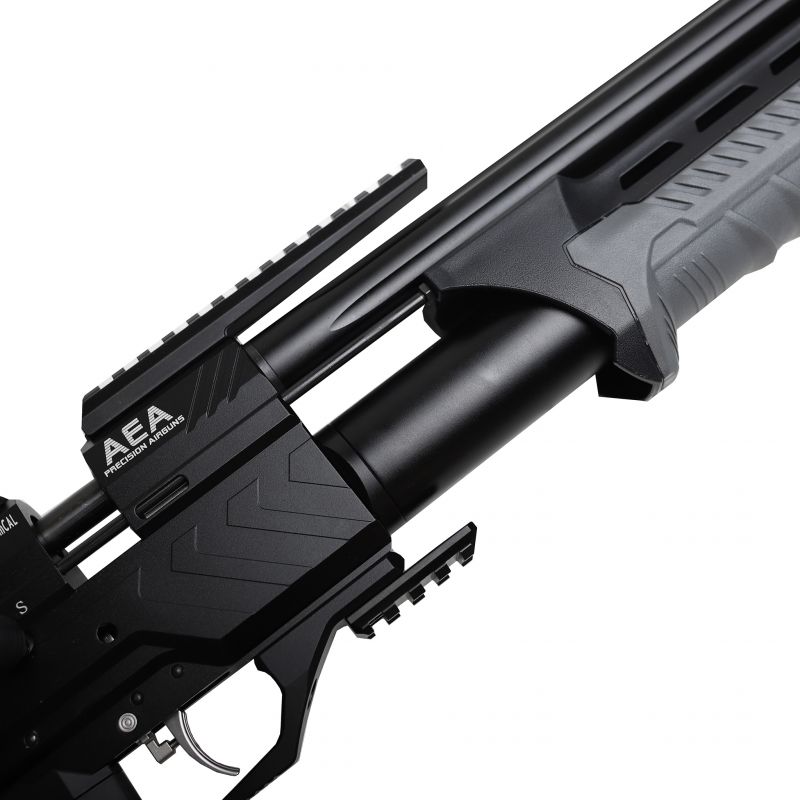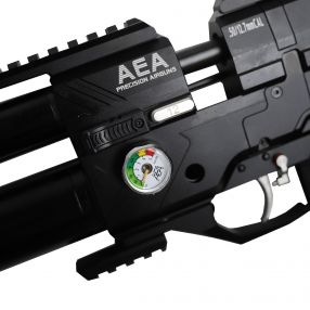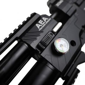 Wiatrówki AEA słyną z wysokiej jakości wykonania. Poszczególne części wykonane są na obrabiarkach CNC. Wszystkie części są bardzo dobrze z sobą spasowane. Wiatrówka jest bardzo kompaktowa i wyważona co ułatwia jej użytkowanie . Jej długość całkowita to 98 cm. Waga wiatrówki to około 4 kg wiec bez problemu możemy strzelać z wolnej ręki lub podparcia. Klasyczną kolbę zastąpił dodatkowy zbiornik powietrza z regulowaną stopką kolby wykonanej z aluminium.