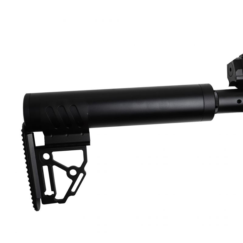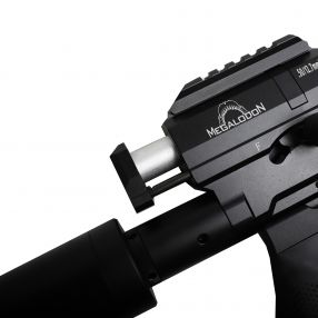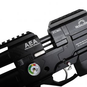 Wiatrówka AEA Megalodon 15" posiada zaawansowany system zbiorników powietrza, zaprojektowany z myślą o dużej mocy i wydajności. Karabinek został wyposażony w dwie duże butlę o łącznej pojemności 600cc i maksymalnym ciśnieniu roboczym 310 Bar, oraz manometr wskazujący ciśnienie w zbiorniku,