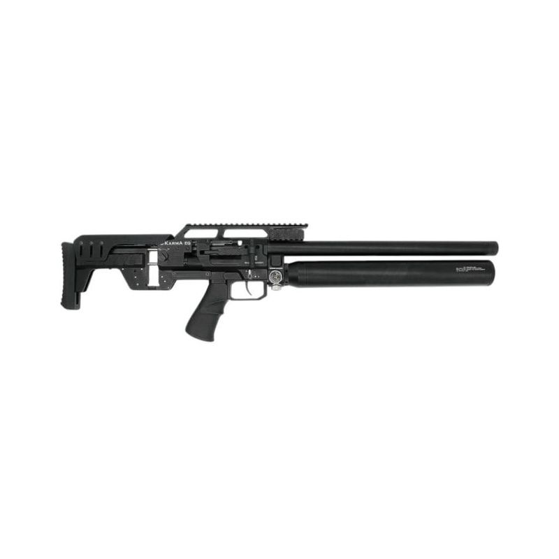 Karma EQ PCP to nowoczesna wiatrówka typu bullpup, która szybko zyskuje popularność wśród strzelców sportowych i myśliwych dzięki wyjątkowej precyzji, wszechstronności oraz solidnej konstrukcji. Zaawansowane możliwości regulacji, dużemu zbiornikowi powietrza, a także innowacyjny system lufy sprawiają, że model Karma EQ idealnie sprawdzi się podczas precyzyjnego strzelania do tarczy.