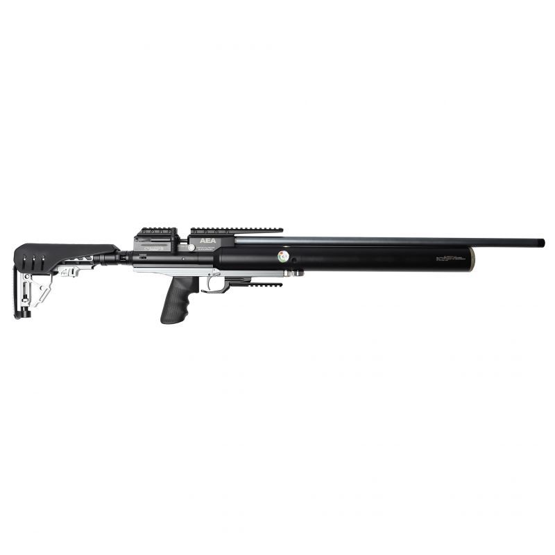 Wiatrówki AEA słyną z wysokiej jakości wykonania. Poszczególne części wykonane są na obrabiarkach CNC. Wszystkie części są bardzo dobrze z sobą spasowane. Wiatrówka jest bardzo kompaktowa i lekka. Jej długość całkowita to 106,6 cm, a po złożeniu kolby to zaledwie to niecałe 81 cm. Waga wiatrówki to około 3,9 kg wiec bez problemu możemy strzelać z wolnej ręki lub podparcia. Kolba teleskopowa jest składana do boku, wykonana jest z aluminium. Możemy ją wydłużać i chować, oraz podnosić i obniżać bakę, dzięki czemu idealnie dopasujemy do swojego wzrostu, tak aby było nam jak najbardziej komfortowo oddawać strzały.