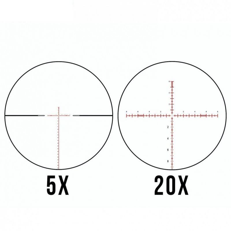 NEXUS 5-20X50 APR-1C FFP MRAD posiada regulację systemu metrycznego wyrażoną w MRAD. Dzięki takiemu systemowi przeliczanie oraz nanoszenie poprawek staje się dużo prostsze i mniej skomplikowane od regulacji w MOA. Klik bębna 0,1 MRAD przesuwa siatkę o 1 cm na 100 m. Ze względu na łatwość posługiwania jednostką MRAD jest ona preferowana przez większość strzelców long-shot, stanowi standard w optyce wojskowej, oraz dużo częściej używana jest przez osoby z Europy.
