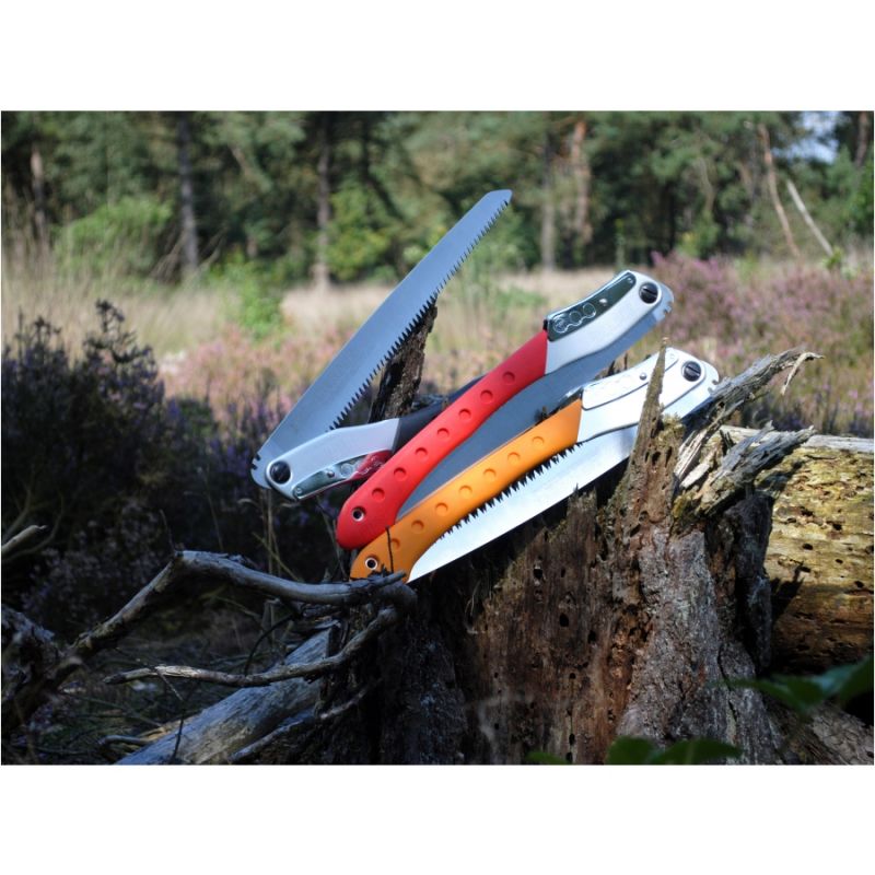 Piła ręczna Silky Bigboy 360-10 wyposażona jest w ostrze o długości 360 mm na którym przypada 10 zębów na 30 mm długości ostrza. Piła jest składana w taki sposób, że ostre zęby schowane są w rękojeści. Pozwala to na bezpieczne przenoszenie narzędzie w plecaku czy torbie z narzędziami.