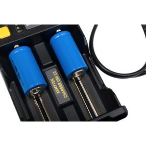 - Możliwość ładowania 2 akumulatorów 10440, 14500, 16340, 18350, 18650, 26650, 32650, AAAA, AAA, AA, C, D