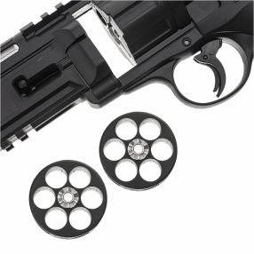 Zapasowy magazynek o pojemności 6 kul, dedykowany do rewolweru Ram Umarex T4E HDR 50. W zestawie 2 sztuki.