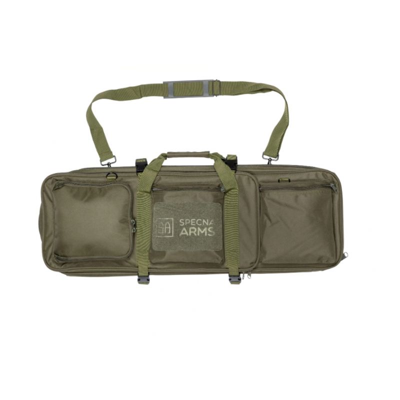 Pokrowiec na replikę marki Specna Arms wykonany z wytrzymałego Nylonu. Pokrowiec pomieści 2 repliki: pistolet maszynowy o długości max 550mm oraz karabinek o długości max 810mm, a po rozwinięciu dodatkowego rękawa długość zwiększa się do 1150mm. Dzięki wielu uchwytom transportowym oraz wypełnieniu z miękkiej pianki pokrowiec Specna Arms Gun Bag pozwoli bezpiecznie i wygodnie przetransportować replikę/wiatrówkę na strzelnicę, czy do samochodu.