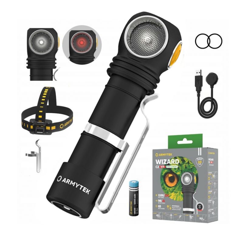 W zestawie wygodne mocowanie na czoło, klips do przypięcia do ubrania lub plecaka oraz wytrzymały nylonowy pokrowiec. Wizard C2 Pro jest kompatybilny z mocowaniem rowerowym ABM-01 oraz mocowaniami na kask serii AHM do prac przemysłowych i alpinizmu.