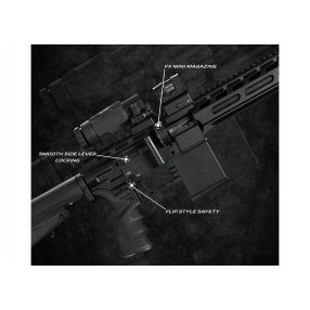 Ponadto, w pełni regulowany, dwustopniowy spust otrzymał odnowioną rękojeść, a FX DRS Tactical 700 posiada własny kolektor Tactical Power o pojemności 35 cm³, oprócz 9 cm³ w bloku. W połączeniu ze zoptymalizowanym przepływem powietrza, zapewnia to maksymalną wydajność i minimalne zużycie powietrza.