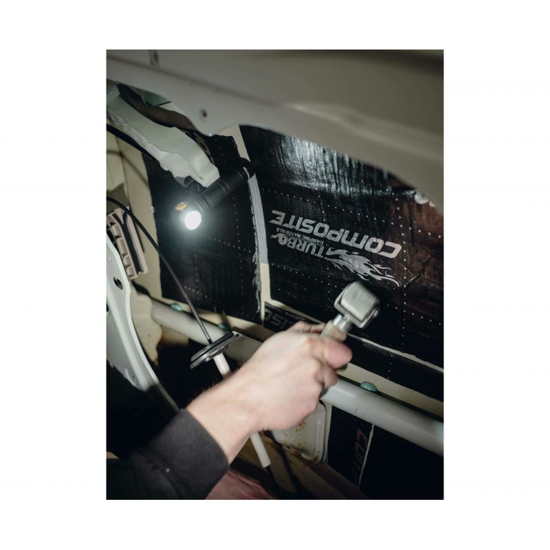 - Całkowita ochrona przed wodą, brudem i kurzem zgodnie z normą IP68 — latarka nadal działa nawet na głębokości 10 metrów. Wytrzymuje upadki z wysokości do 10 metrów.