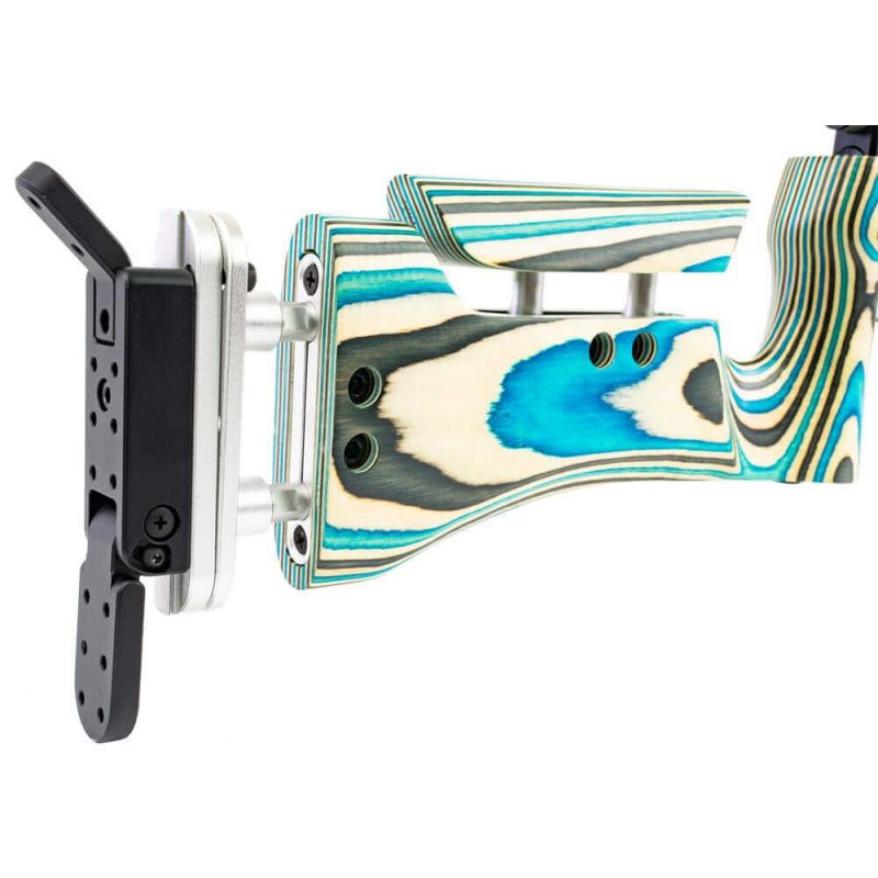 Wiatrówka Snowpeak MAT300 została wyposażona w laminowaną, w pełni regulowaną kolbę, która umożliwia precyzyjne dopasowanie karabinka do indywidualnych cech strzelca. Regulowana stopka kolby pozwala na zmianę jej wysokości oraz pochylenia, a dodatkowa możliwość wydłużenia długości kolby o maksymalnie 2 cm ułatwia idealne dopasowanie do długości ramion. Kąt dolnego ramienia stopki można regulować, natomiast górne ramię istnieje możliwość całkowicie zdemontować. Całość uzupełnia regulowana baka policzkowa, którą można podnieść nawet o 4 cm, co znacząco poprawia ergonomię składu i komfort celowania. Tak szeroki zakres regulacji przekłada się bezpośrednio na wygodę użytkowania oraz wysoką powtarzalność i stabilność oddawanych strzałów.