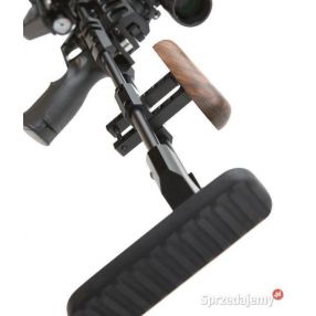 Pistoletowy uchwyt strzelby Evanix Sniper X2 jest dobrze wyprofilowany i dopasowuję się do dłoni, tak samo jak podłokietnik pod kartuszem. Stopka broni jest z metalowego elementu, na którym jest przymocowana ochronna guma. W razie potrzeby gumę można zdjąć. Jedyną niemetalową częścią na Sniperze jest baka, która jest wykonana z drewna orzechowego, co daje ciekawy efekt.