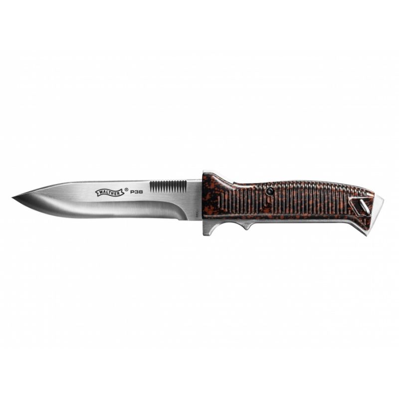 Walther P38 to duży fixed w stylu noża wojskowego z okresu II Wojny Światowej, w którym zastosowano masywną klingę ze stali nierdzewnej 440C oraz okładziny inspirowane rękojeścią pistoletu P38.